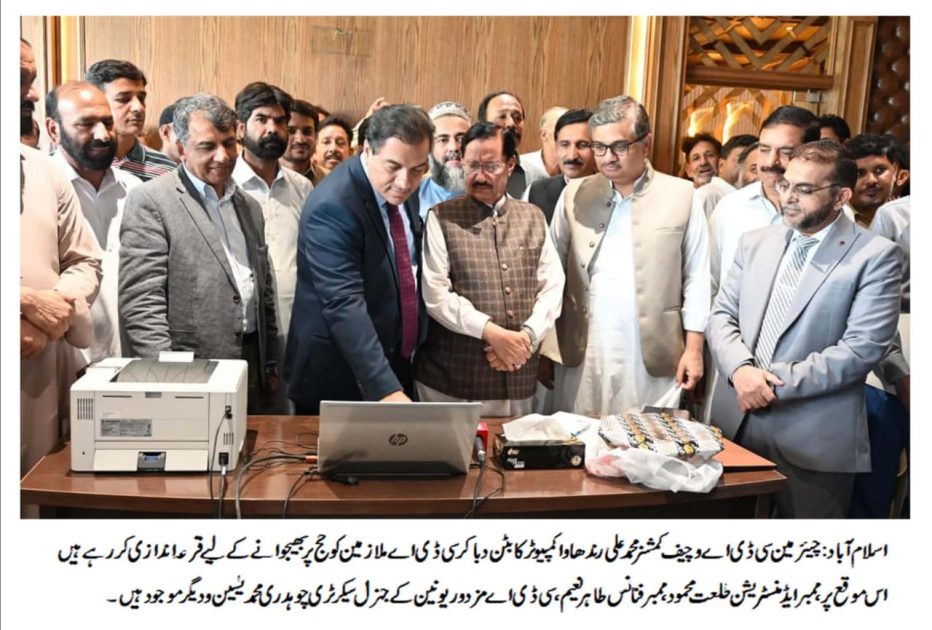 سی ڈی اے مزدور یونین (سی بی اے) کے معاہدے کے مطابق سی ڈی اے ملازمین کو حج پر بھیجوانے کے لیے قرعہ اندازی کی تقریب۔