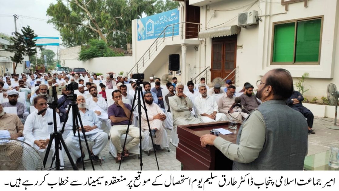 اسلام آباد —– امیر جماعت اسلامی پاکستان حا فظ نعیم الرحمن کی اپیل پر ملک بھر کی طر ح شمالی پنجاب کے مختلف شہروں میں بھی یومِ حقوقِ کشمیر و فلسطین منایا گیا، جس میں بڑی تعداد میں کارکنان جماعت اسلامی اور شہریوں نے شر کت کی، اس سلسلے میں اسلامک سینٹر گجرات میں منعقدہ سیمینار سے خطاب کر تے ہو ئے امیرجماعت اسلامی پنجاب ڈاکٹر طارق سلیم نے کہا پانچ اگست 2019ء کا دن کشمیری عوام کی تاریخ میں سیاہ ترین دن ہے، جب بھارت نے آئین کی دفعات 370 اور 35A ختم کر کے جموں و کشمیر کی خصوصی حیثیت ختم کر دی، اس اقدام کے بعد کشمیریوں کو ان کے بنیادی آئینی و انسانی حقوق سے محروم کر دیا گیا، اس اقدام سے پوری دنیا کے سامنے بھارتی سامراج کا اصل چہرہ بے نقاب ہو گیا ہے، انھوں نے کہا اسرائیل بھی غزہ میں امریکہ کی سرپرستی میں بدترین درندگی کا مظاہرہ کر رہا ہے،معصوم فلسطینی بچوں، خواتین اور شہریوں کو بھوک، پیاس اور بمباری سے شہید کیا جا رہا ہے، اسلامی دنیا کی خاموشی ظالم قوتوں کے حوصلے بڑھا رہی ہے، اہلِ کشمیر و فلسطین یہود و ہنود کی صیہونیت اور ہندوتوا پر مبنی نظریات کے ظلم و ستم کا شکار ہیں،ڈاکٹر طارق سلیم نے کہاجب ہندوستان کی 5 لاکھ آرمی، تمام تر ظلم وجبر کے باوجود کشمیری عوام کو زیر نہ کر سکی،تو اس نے کشمیر کی حیثیت کو ختم کرنے کے لئے کالے قانون کا سہارا لیا،مودی حکو مت کو سمجھ جاناچاہئے اہل کشمیر کے دل پاکستان کے ساتھ دھڑ کتے ہیں، مقبوضہ کشمیر میں کرفیو، انٹرنیٹ بندش، سیاسی رہنماؤں کی گرفتاریاں اور قابض بھارتی فوج کی تعداد میں اضافہ ریاستی جارحیت کا منہ بولتا ثبوت ہے، ڈاکٹر طارق سلیم نے کہا پاکستانی قوم جدوجہد آزادی مقبوضہ کشمیر کے لئے کشمیریوں کے شانہ بشانہ کھڑی ہے، بھارت نے پہلے ہی مقبوضہ جموں و کشمیر کو دنیا کی سب سے بڑی جیل میں تبدیل کر رکھا ہے اور آج سے چھ سال قبل اس اقدام کے ذریعے وہاں بسنے والے کشمیری عوام سے ان کے جینے کا حق چھیننے کی کوشش کی لیکن بہادر اور غیور کشمیری عوام،بھارت کے سامنے گھٹنے ٹیکنے کے بجائے بھارتی ظلم و جبر کا سامنا کر رہے ہیں، انھوں نے کہا بھارت نے مقبوضہ کشمیر کی خصوصی حیثیت کو تبدیل کرکے اقوام متحدہ کی قراردواوں کی سنگین خلاف ورزی کی لیکن اقوام متحدہ بھارت کے اس یکطرفہ اور غیر آئینی اقدام پر کوئی ایکشن لینے کے بجائے خاموش تماشائی بنا ہوا ہے۔