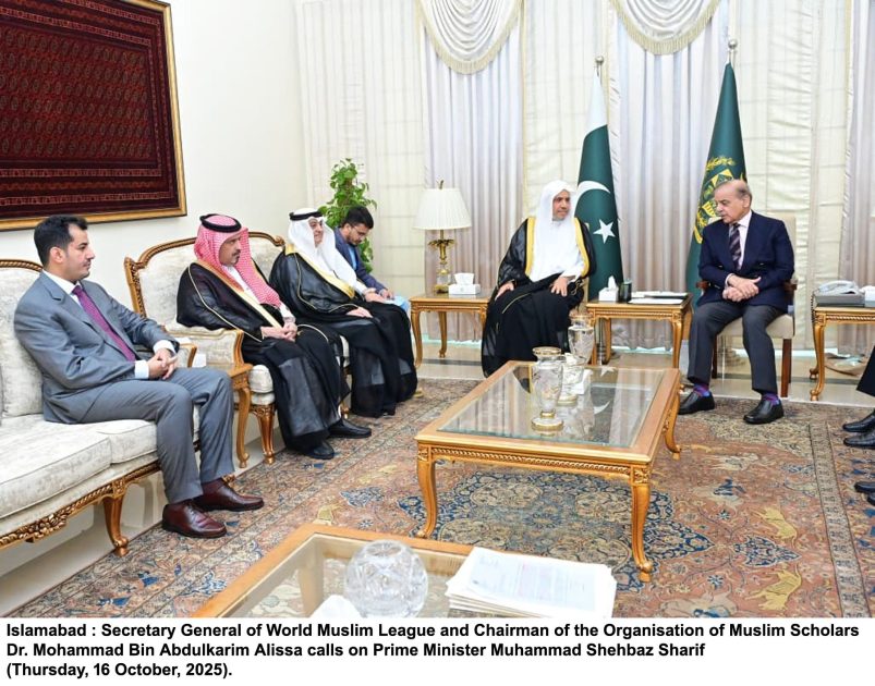 رابطہ عالم اسلامی کے سیکریٹری جنرل شیخ ڈاکٹر محمد بن عبدالکریم العیسیٰ کی شہباز شریف سے ملاقات