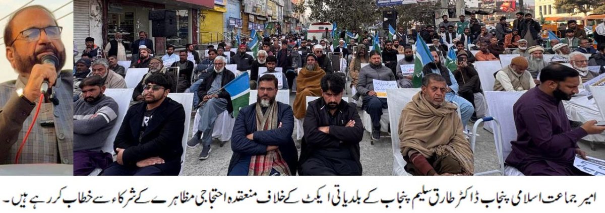 اسلام آباد —— امیر جماعت اسلامی پاکستان حافظ نعیم الرحمن کی اپیل پر پنجاب بھر کے مختلف اضلاع میں حکومت پنجاب کی جانب سے منظور کردہ بلدیاتی ایکٹ کے خلاف احتجاجی مظاہرے کیے گئے، امیر جماعت اسلامی پنجاب ڈاکٹر طارق سلیم، سکرٹری جنرل اقبال خان سمیت ضلعی اُمراء نے احتجاجی مظاہروں کی قیادت کی۔