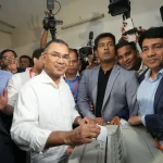 ی این پی کے چیئرمین اور اس حلقے کے لیے پارٹی کے نامزد امیدوار طارق رحمان نے ڈھاکہ کے حلقہ 17 کے گلشن ماڈل ہائی اسکول اینڈ کالج سینٹر میں اپنا ووٹ کاسٹ کیا۔